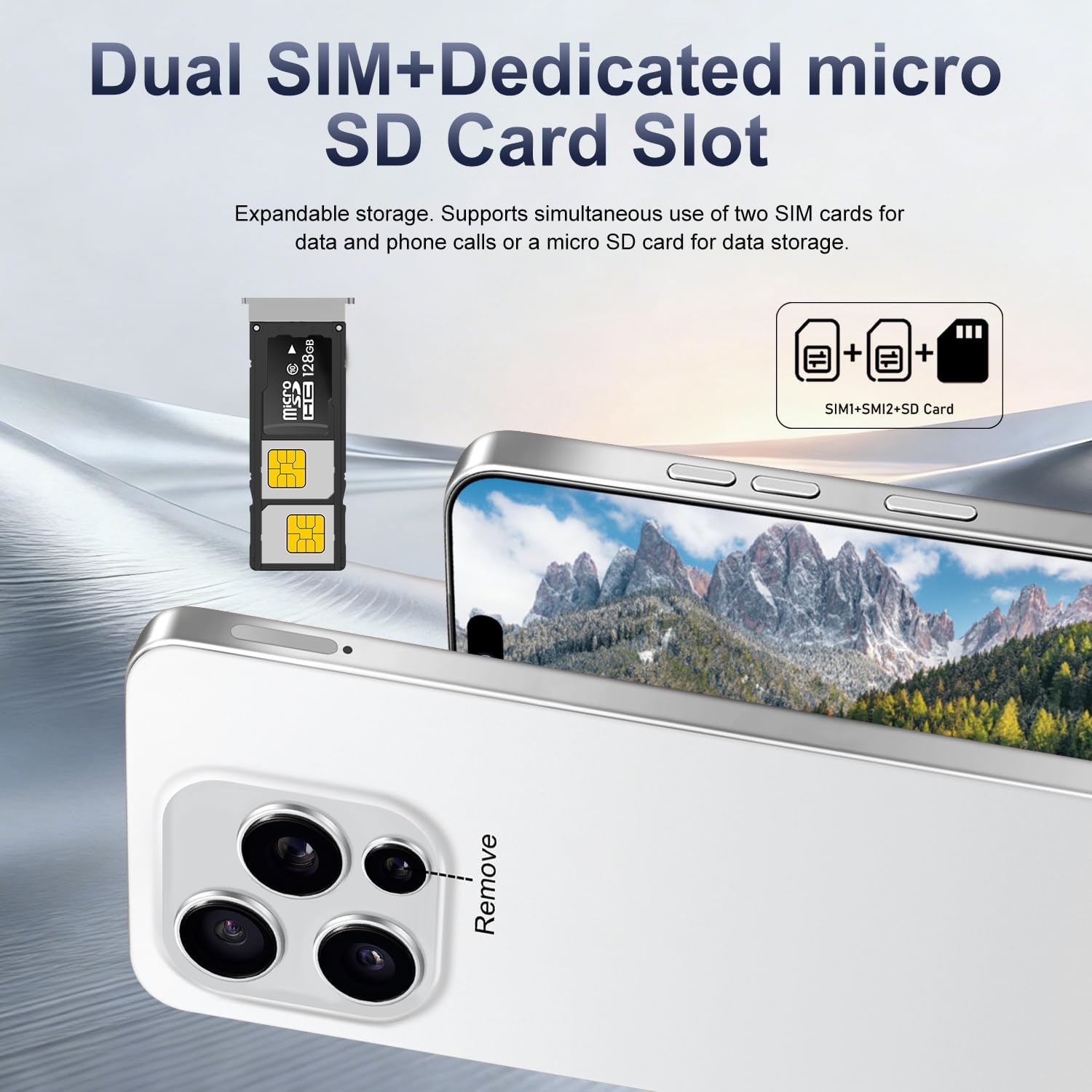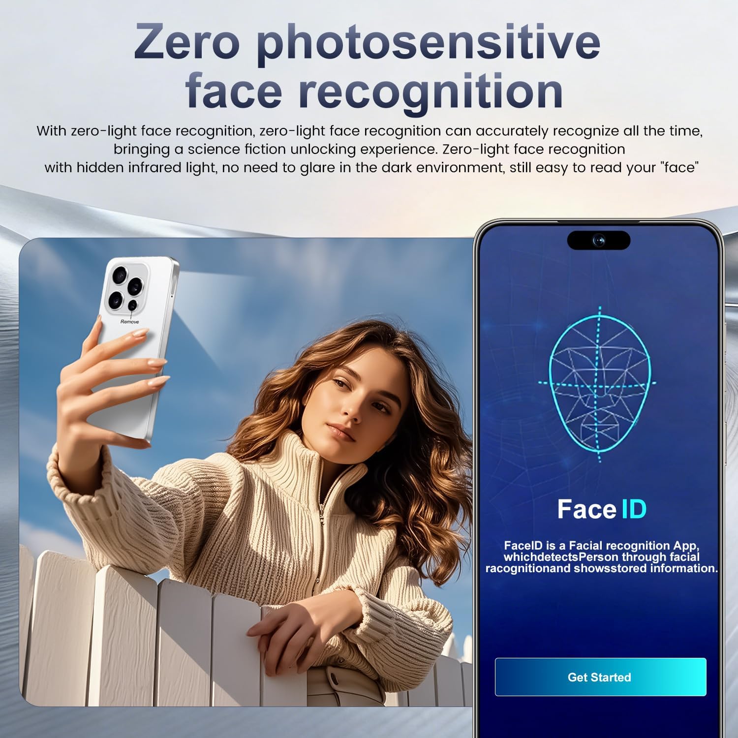 16 PM Smartphone Unlocked Cell Phone, 6.99“ HD Screen5G Phone, 16+512GB phoneunlocked, Android 14.0, 68+108MP Zoom Camera, Fingerprint Button Unlock-and take Photos (White)