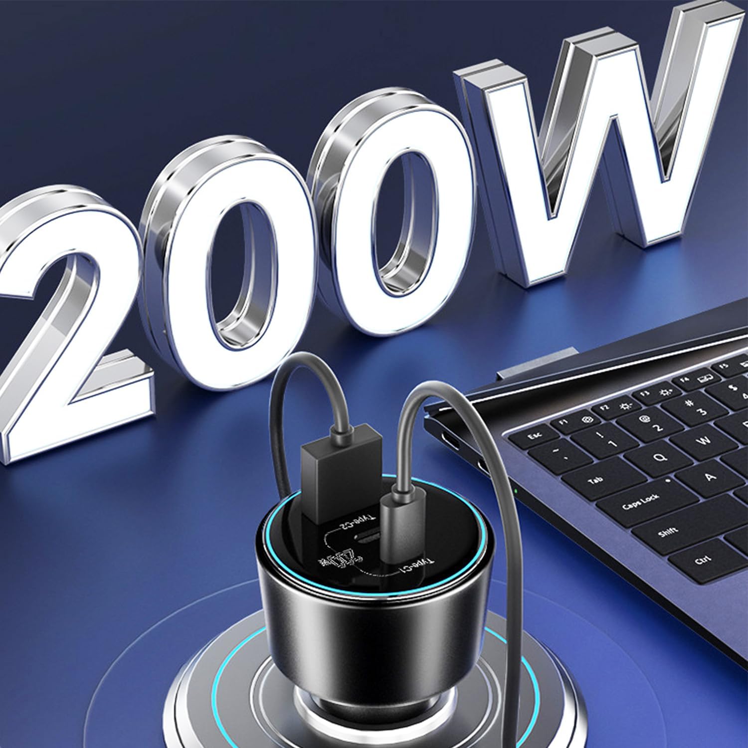 200W USB C Car Charger, Graaci PD 100W Type C Car Charger Adapter, QC5 PPS 45W Super Fast Charging for MacBook Pro Air, iPhone 15 Pro Max, Galaxy S22 S23 Ultra, iPad, Laptops