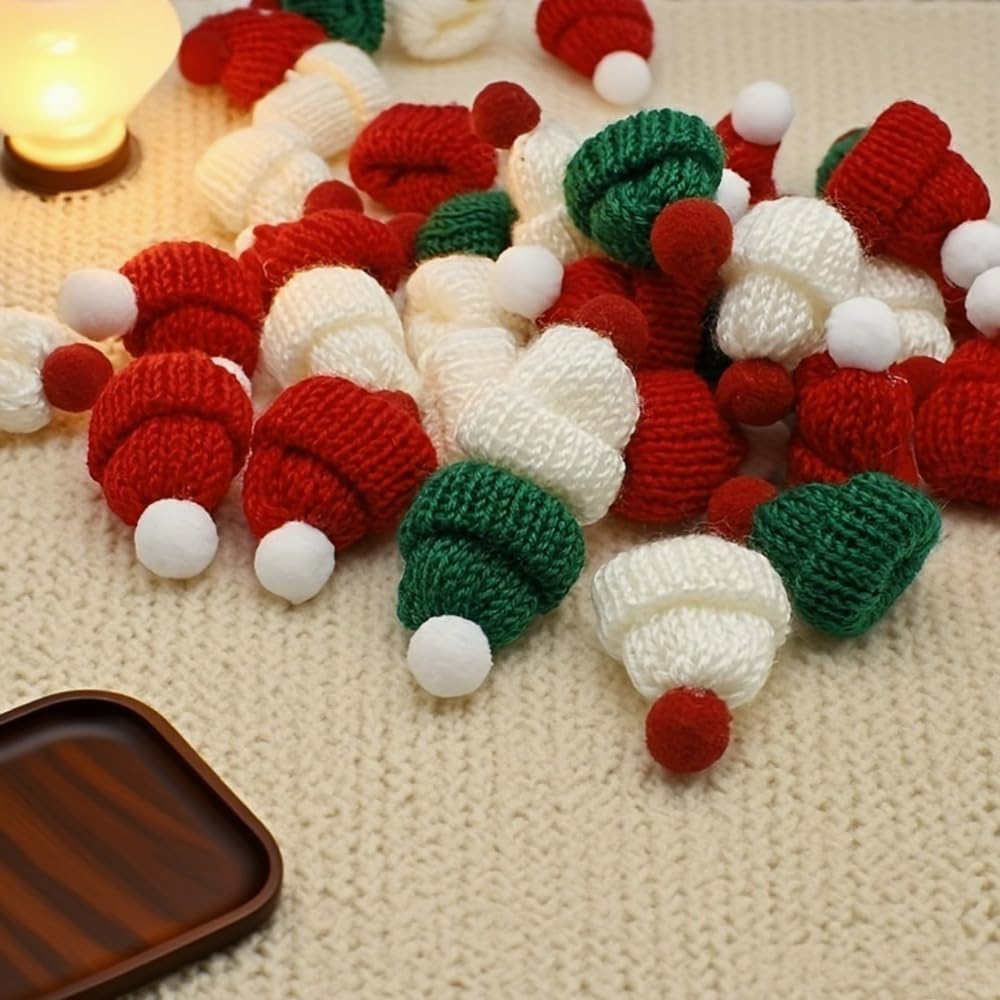 20Pcs Christmas Mini Haning Ornament Knitted Hats, Handmade Craft Caps for DIY Holiday Ornaments, Festive Seasonal Accents and Assorted Festive Styles
