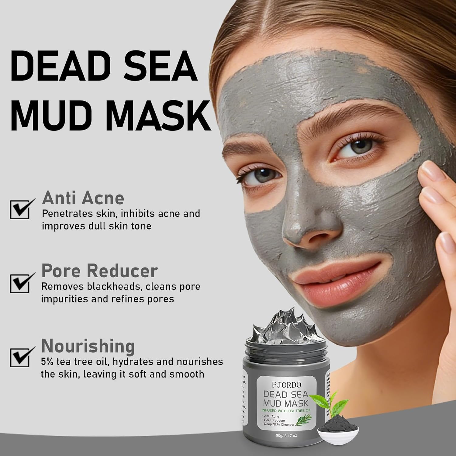 Dead Sea Mud Mask: Enriched with Tea Tree Oil, Minerals and High Quality Dead Sea Mud, this clay mask for acne helps to remove acne, remove excess oil from the skin and deeply nourish and moisturize, thus regulating the water-oil balance. It gently exfoliates, removes blackheads, refines pores, and leaves skin feeling refresh and smooth.