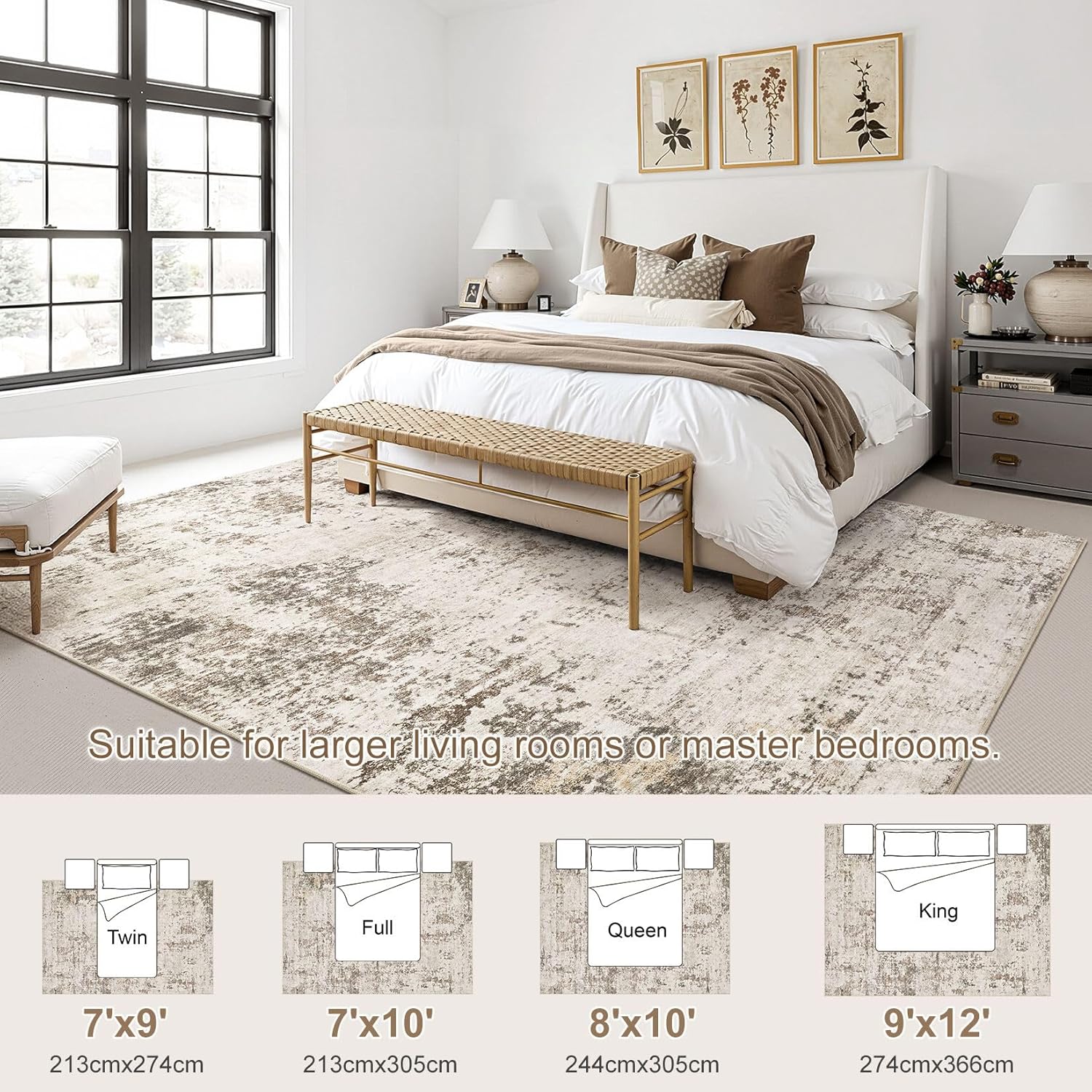 NEUTRAL ABSTRACT RUG: This rug features a unique neutral abstract design with a cream base combined with brown, adding more warmth and cozy to your home. The carpet is good for living room, bedroom, dining room study room, home office, etc