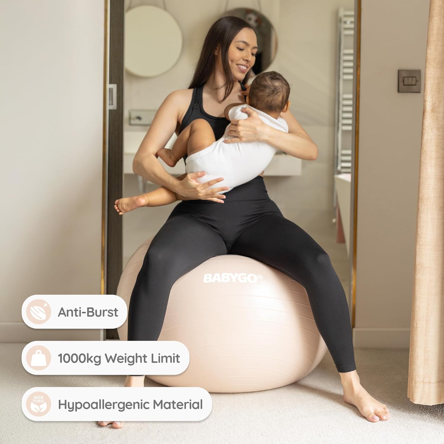 📏 See our size guide for the right ball for you. Our ball is made from pregnancy and baby friendly materials, no phthalates and non latex. 5x Stronger than a regular gym ball, be sure to include the BABYGO ball as part of your birth plan.