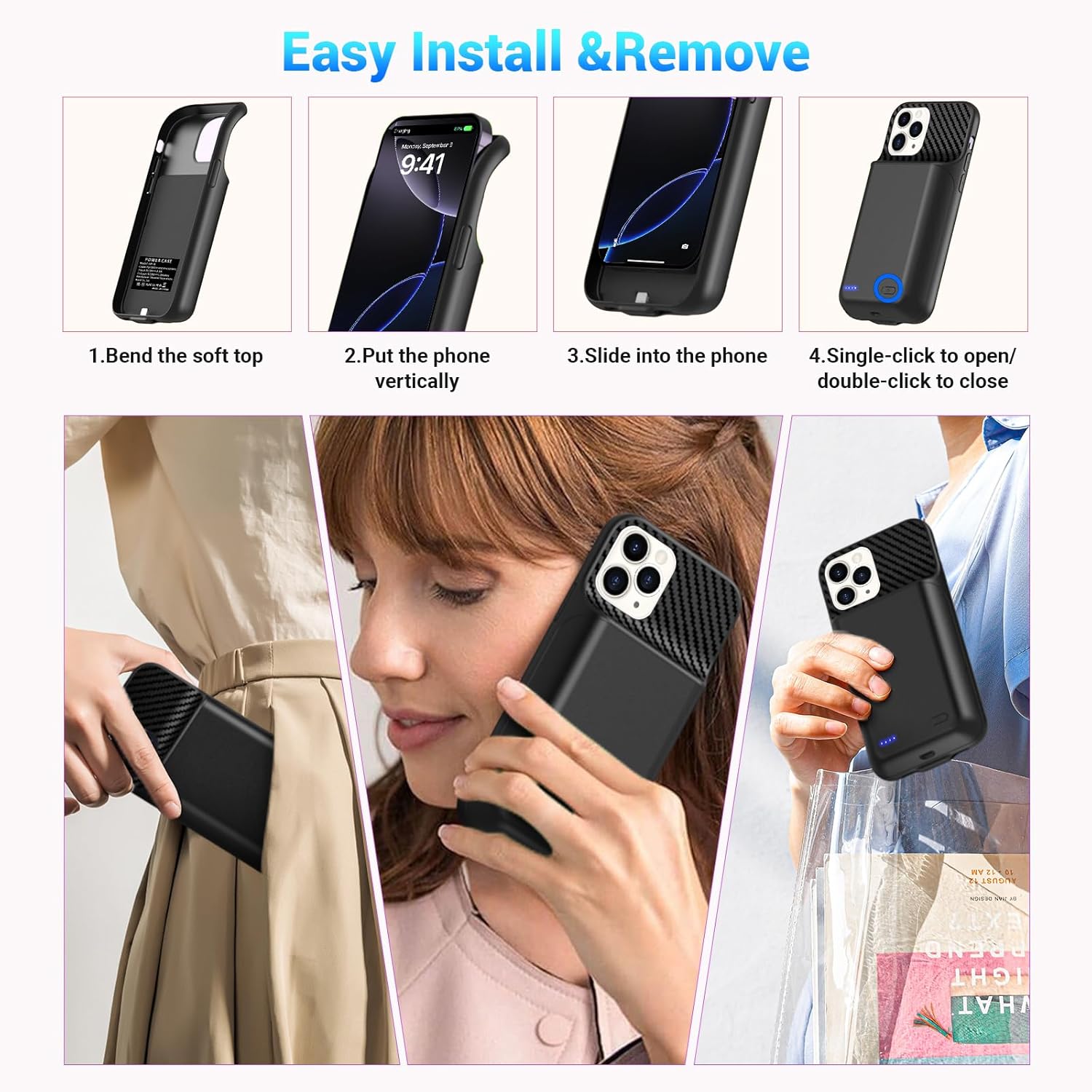 【Large Capacity 13800mAh Battery Case】Upgraded Powerful Battery Case Design 13800mAh the thickness is 0.92 inch and weighs about 6.6oz, Designed for people who are always on the go, elevates your iPhone 16 Pro Max experience by giving you power wherever you go!