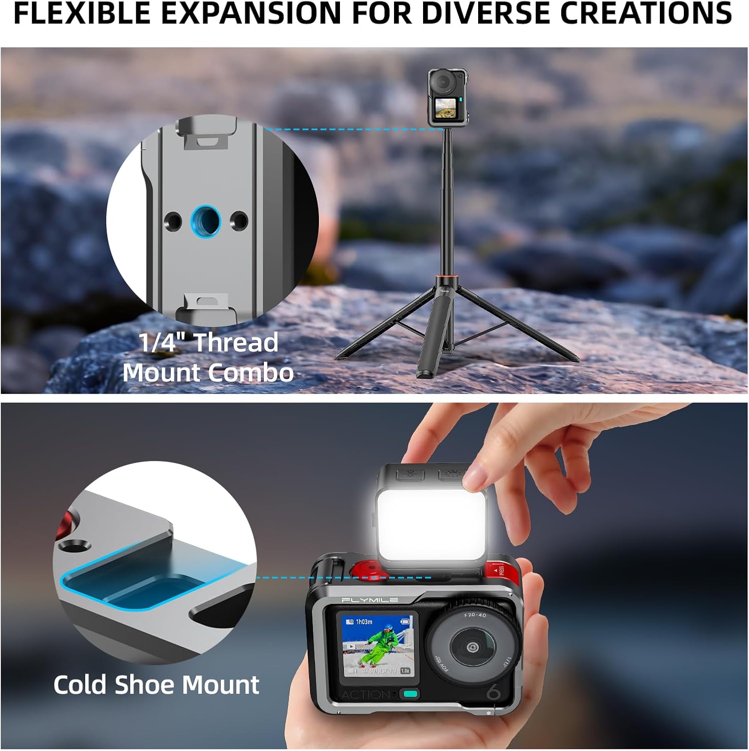 【Perfect Compatibility with Osmo Action 6】The protective bundle is tailor-made for DJI Osmo Action 6 camera, including Metal Cage *1, Front Screen Protector *1, Rear screen protector *1、lens Protector *1(with cleaning tools). All components are precisely molded in a 1:1 ratio, perfectly fitting the contour of the camera body without blocking any buttons or ports, ensuring unobstructed operation of all camera functions.