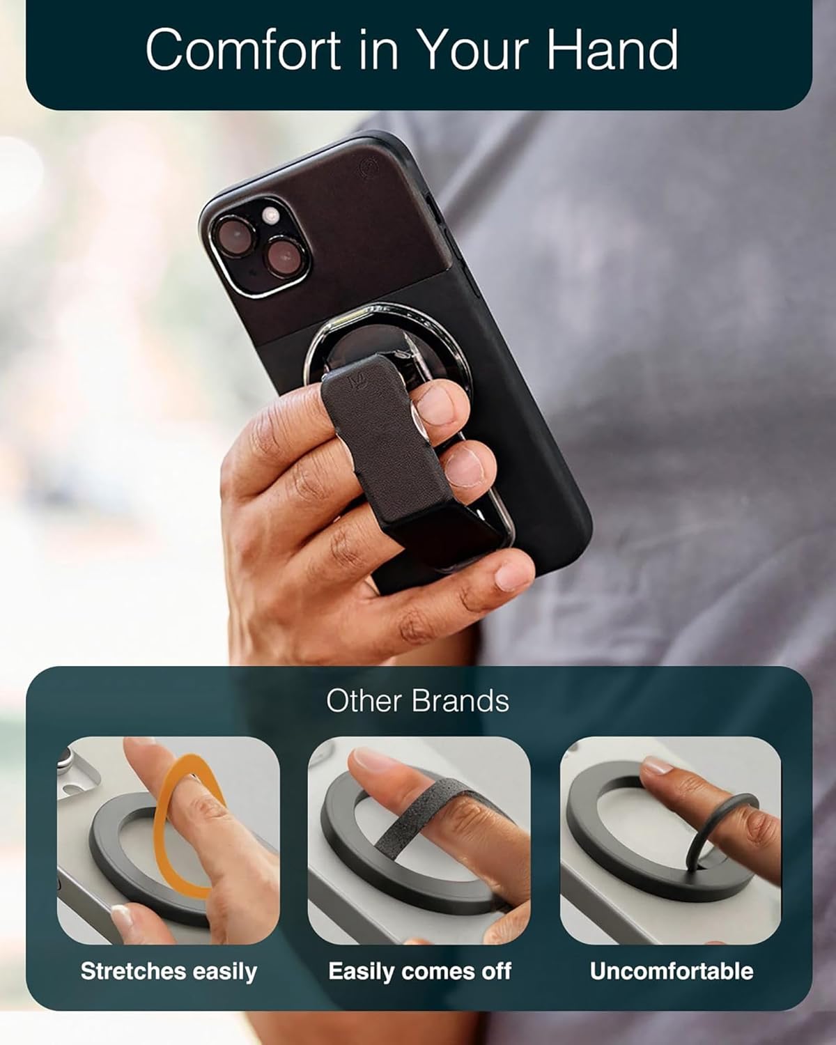 𝗠𝗼𝗿𝗲 𝗖𝗼𝗺𝗳𝗼𝗿𝘁𝗮𝗯𝗹𝗲 𝗚𝗿𝗶𝗽, The phone grip and stand has been designed to fit comfortably around your fingers. Just pop the magnetic grip to provide a more comfortable and secure hold for your iPhone, Samsung or Pixel device. Unlike metal rings, it won’t make your fingers feel uncomfortable when holding your phone.