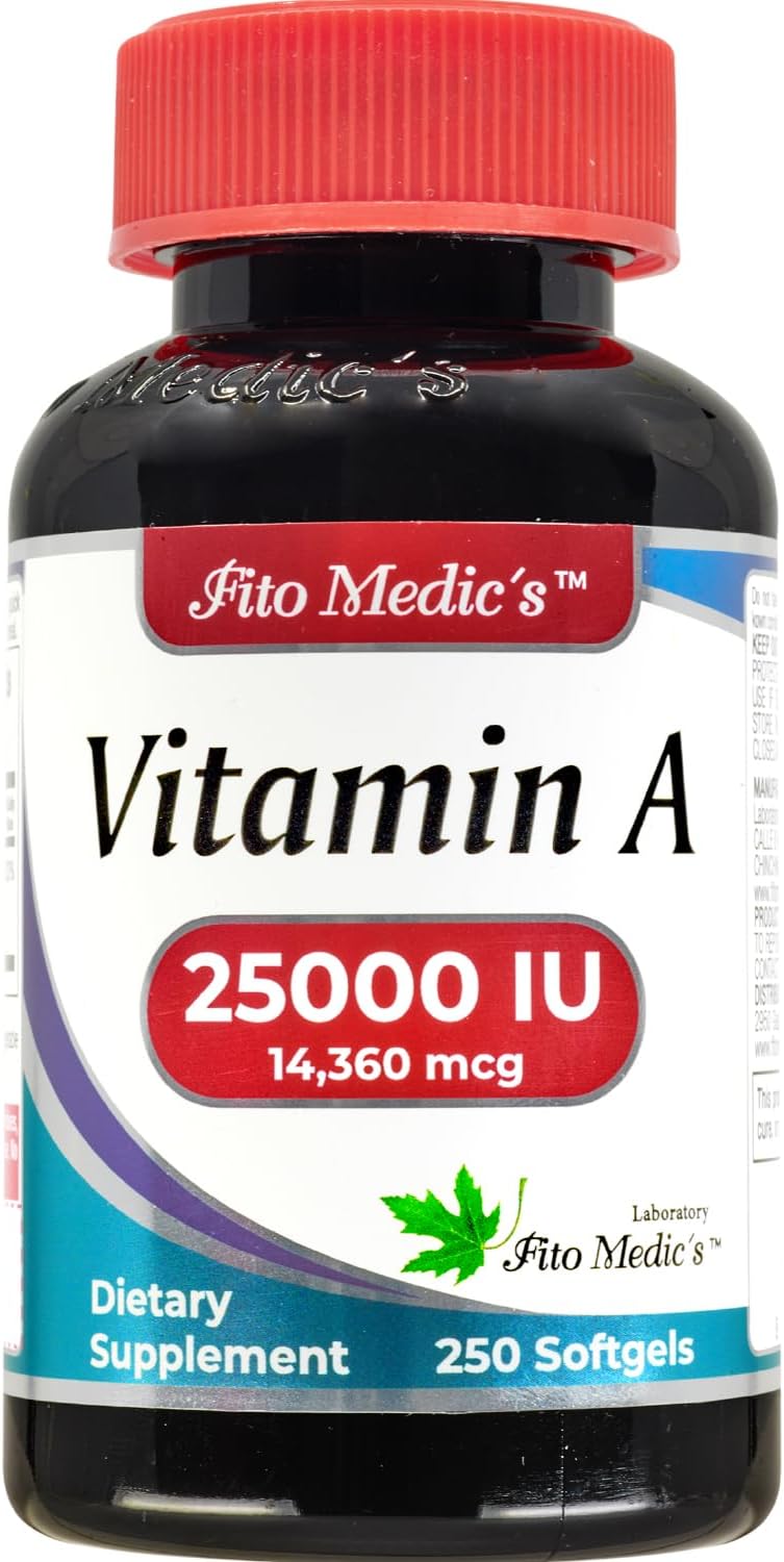 Fito Medic´s Vitamin A 25000 IU Softgels are the perfect way to get the nutrients you need for healthy skin, eyes and immune system function. With ultra-high absorption and antioxidant activity, this supplement helps to keep your body functioning properly. The 250 softgels provide a 250 days supply of vitamin a, giving you long-term benefits. Keep your body and your health in top shape with Fito Medic´s – vitamin a 25000 iu softgels – Each softgel delivers – vitamin a 25000 iu softgels -in one serving, providing you with a convenient way to meet your nutritional needs. Just take one softgel daily with a meal to get the benefits of – vitamin a -. With – vitamin a 25000 iu softgels -, you can trust that you’re getting the essential nutrition your body needs!.
