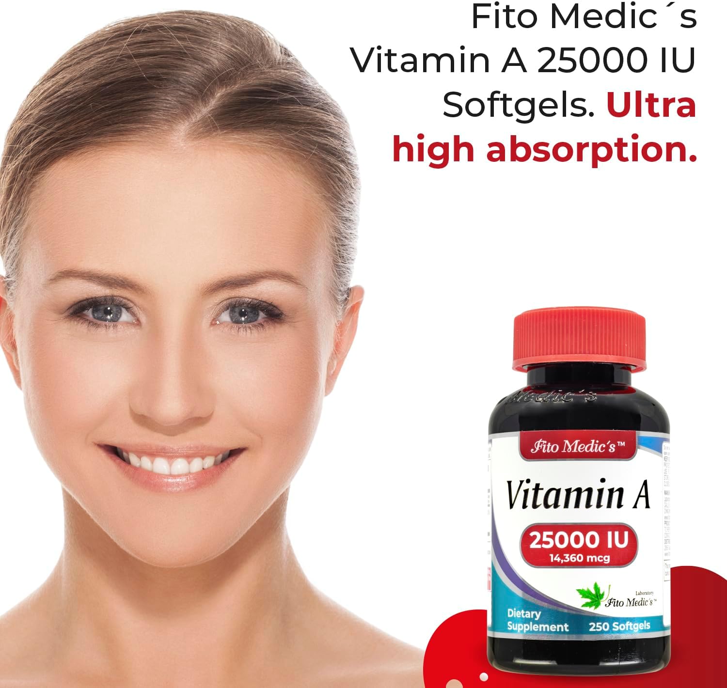 FITO MEDIC’S Lab – Vitamin a 25000 iu softgels – 250 Softgels- Ultra high Absorption, Healthy Skin & Eyes, Antioxidant Activity & Immune System Function.