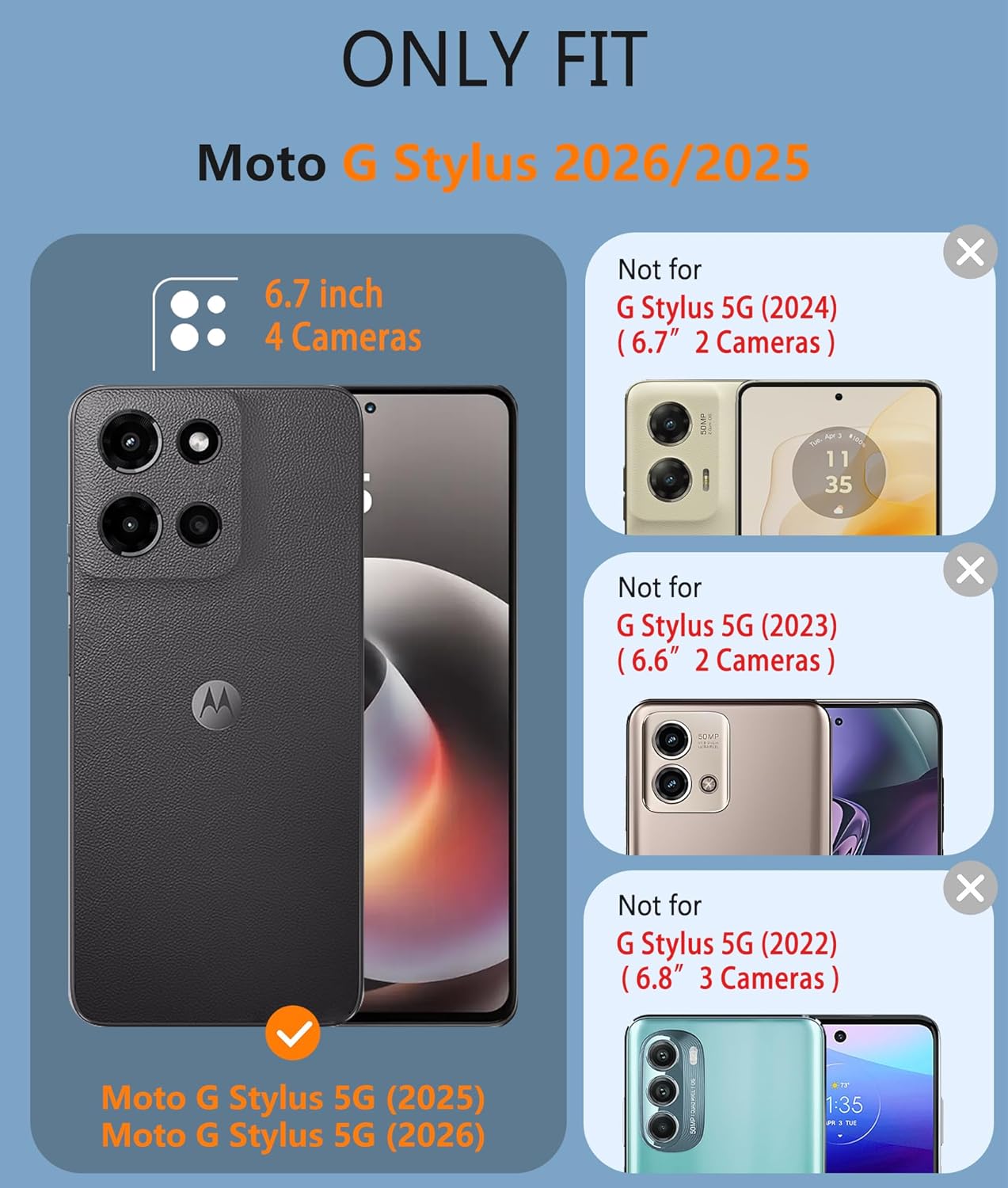 Compatibility: Only fit Moto G Stylus 2026/2025, 6.7 inches. Packages: A smart phone basic case (Motorola G Stylus 2025/2026 case) +1 pack tempered glass screen protector. If you have any questions, please feel free to contact us
