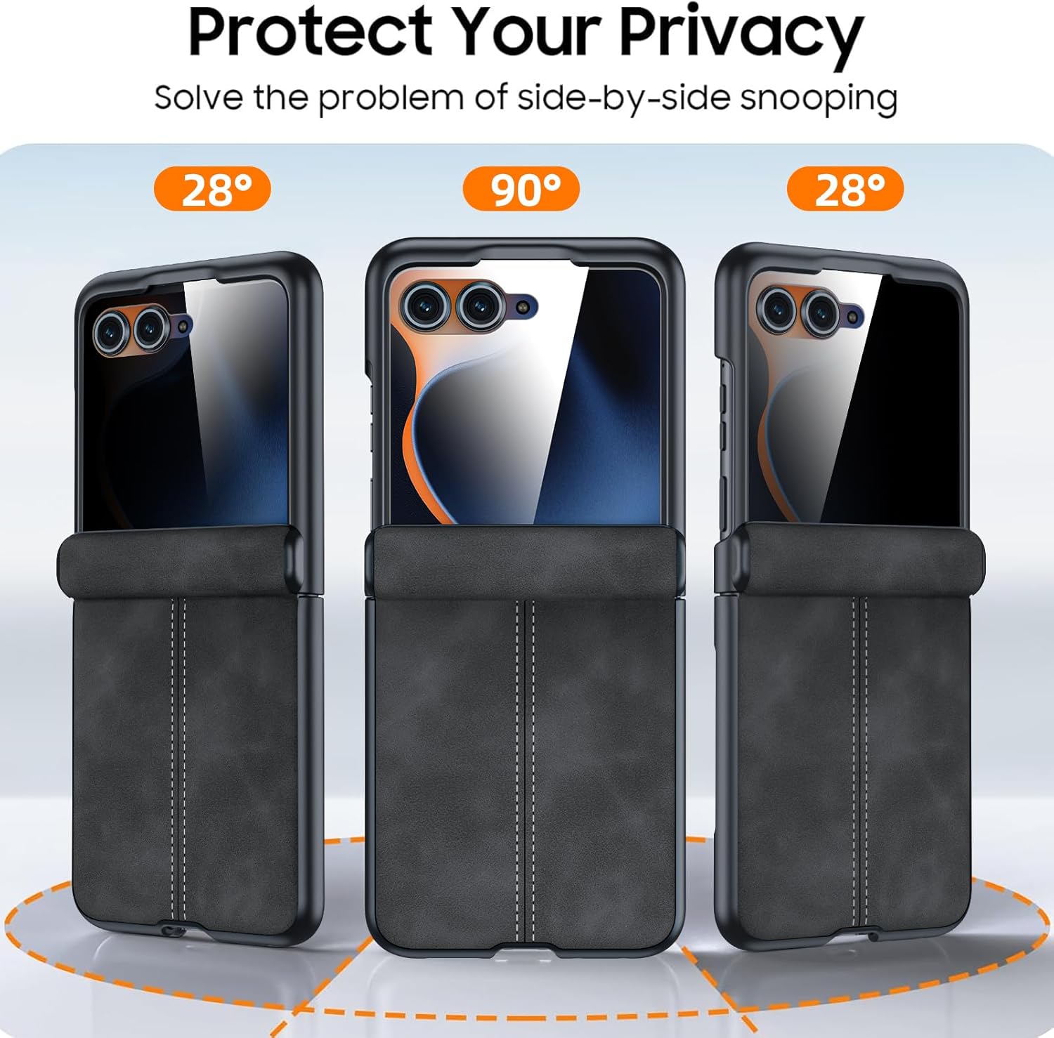 [Razr 2025/2024 Case with Privacy Screen Protection] Motorola Razr 2025 Case has a built-in privacy tempered glass screen protector on the upper cover. Protect your screen and privacy anywhere, anytime. Let you use in public places with confidence, while providing excellent protection for the phone, maintain the original screen sensitivity, prevent scratches and damage caused by impact. Only for Motorola Razr 2025/2024 case