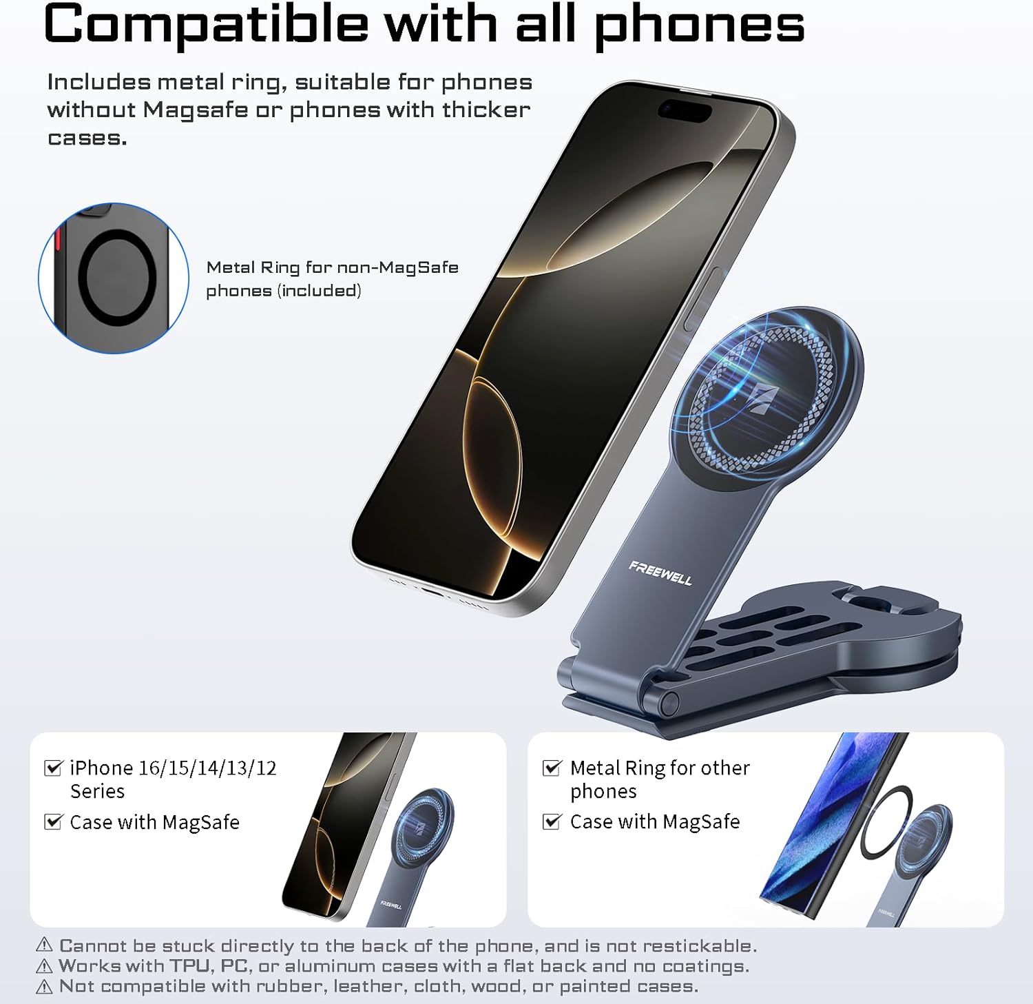 MagSafe Compatibility: Specifically designed to work seamlessly with iPhones and any smartphone cases that support MagSafe, ensuring a secure magnetic connection.