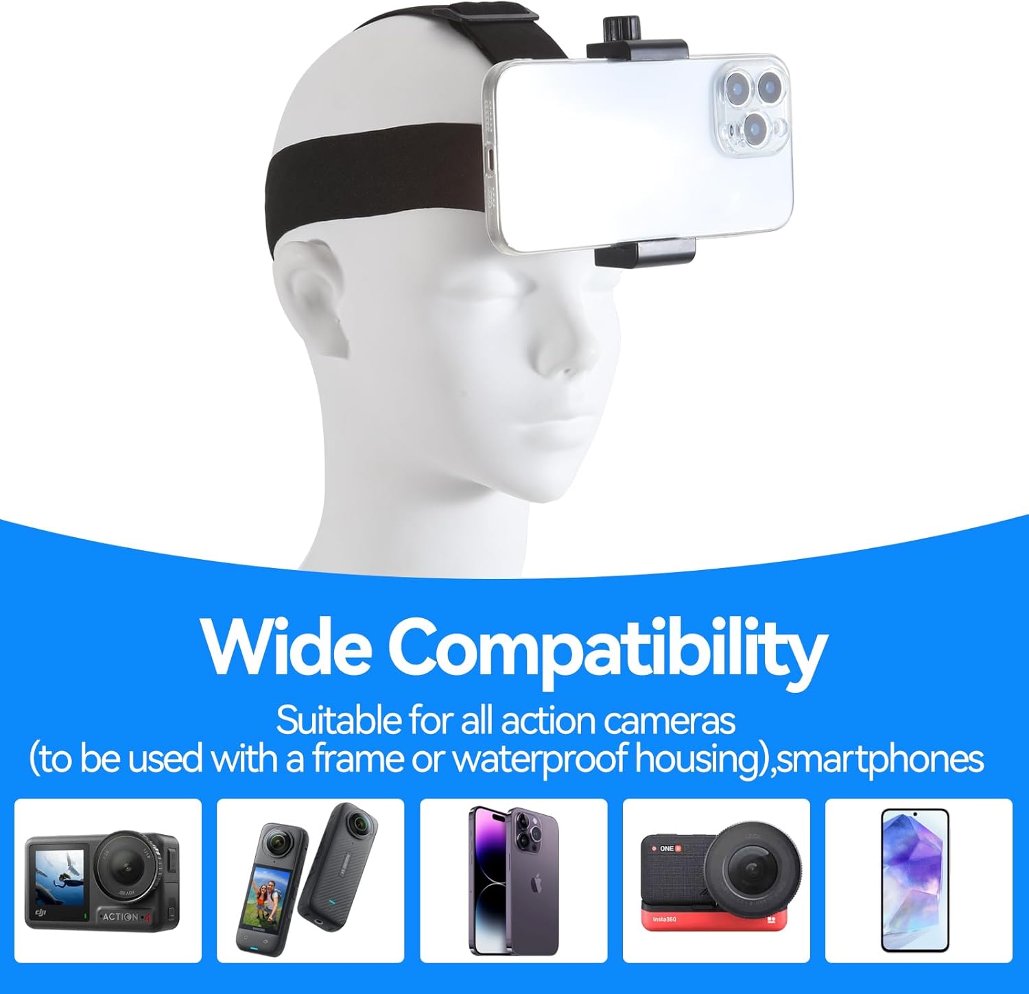 Adjustable headband for most head sizes: There are specially designed slip proof adhesive strips and comfortable foam pads to protect the back of the head. You don’t have to worry about slipping and damage your mobile phone or camera.