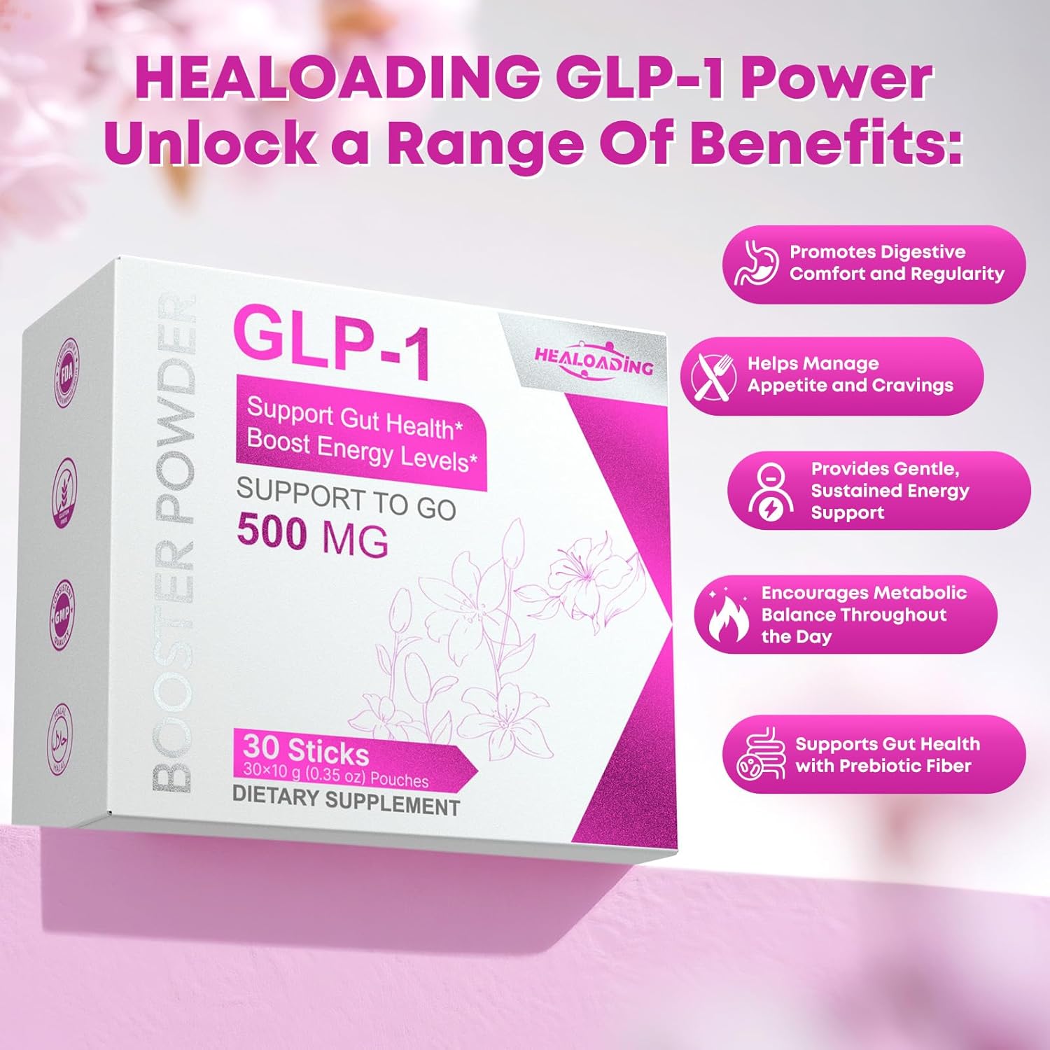 HEALOADING GLP-1 Natural Metabolic Support Powder – 30 Single-Serve Sticks | Portable Formula, Gluten-Free & Non-GMO