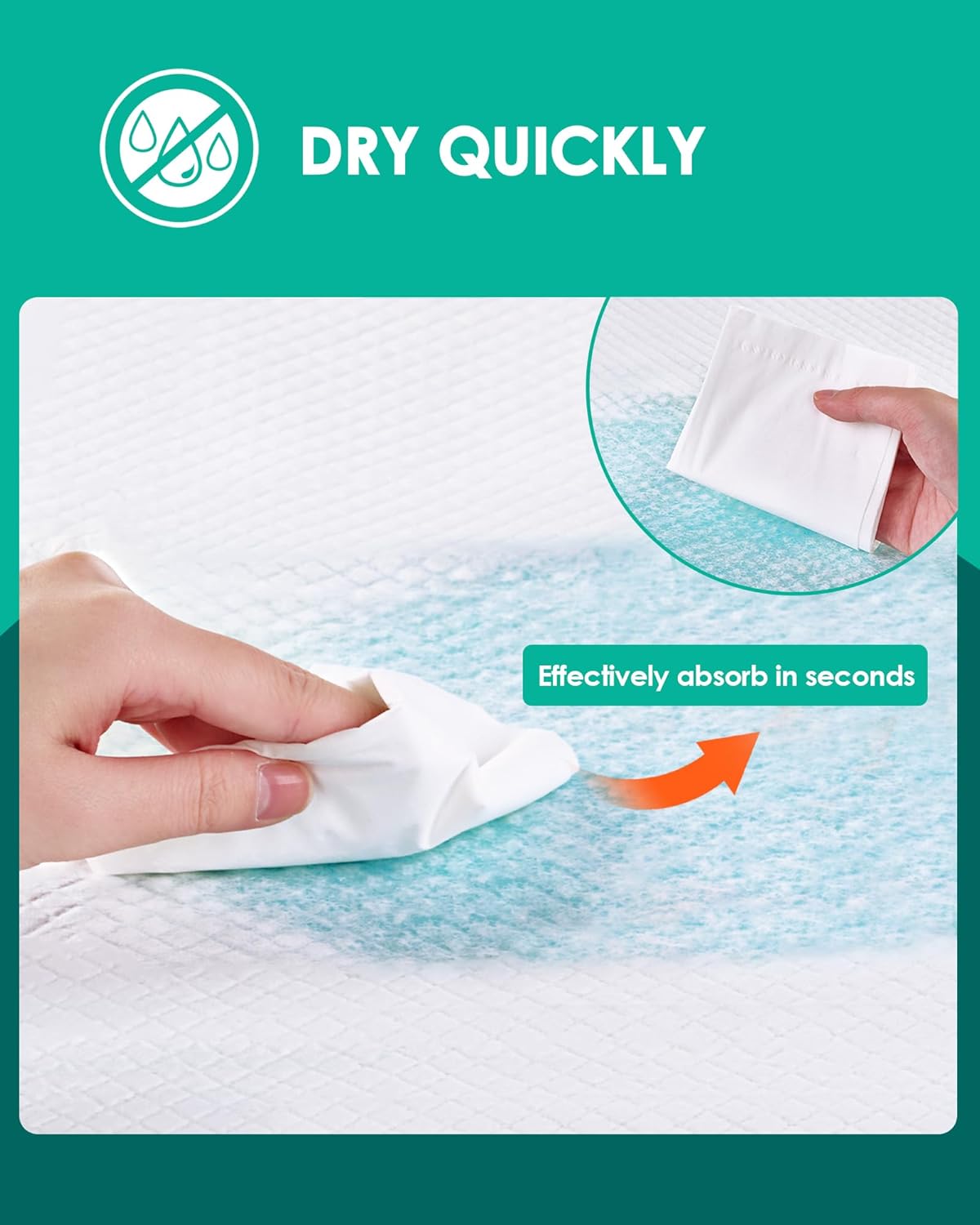 【Leak-Proof Design to Protect Your Home】: The bottom of each dog pad is equipped with a PE film, which can effectively prevent moisture leakage and avoid unnecessary cleaning. Even if your dog moves or plays on the puppy pad, urine will not penetrate into your floor, carpet or furniture, keeping your home away from stains. This leak-proof design is especially useful for puppies or elderly dogs who may urinate frequently, providing them with a clean and hygienic space