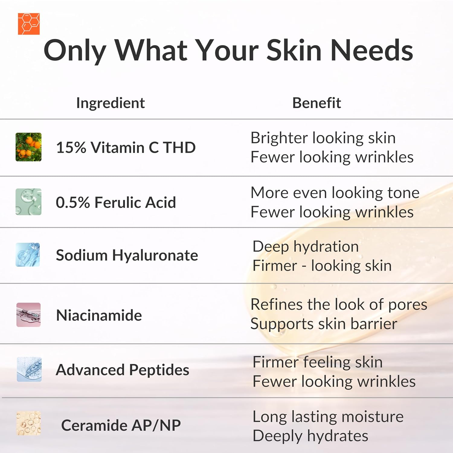 LeVaye Vitamin C Serum, Anti-Aging Face Serum – 15% Vitamin C, Ferulic Acid, Niacinamide, Hyaluronic Acid, Peptides, Ceramides – Targets Wrinkles, Fine Lines, Dark Spots, Enlarged Pores, Dry Skin
