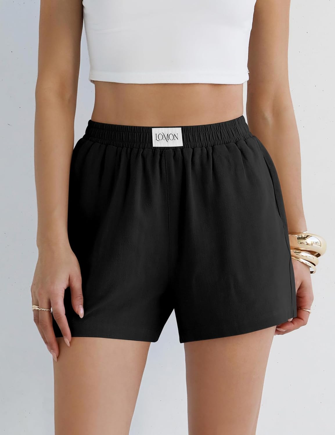 LOMON Linen Shorts for Women Summer Beach Casual Shorts Comfy Lightweight Vacation Cruise Outfits Lounge Pants with Pockets