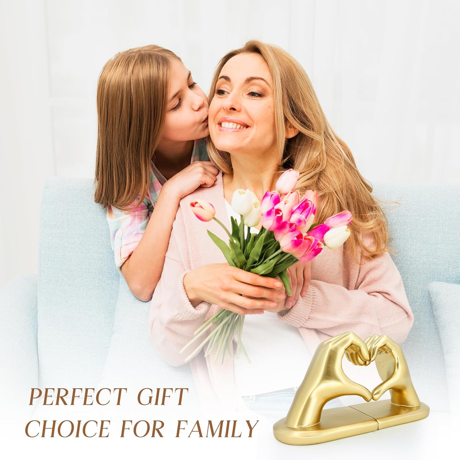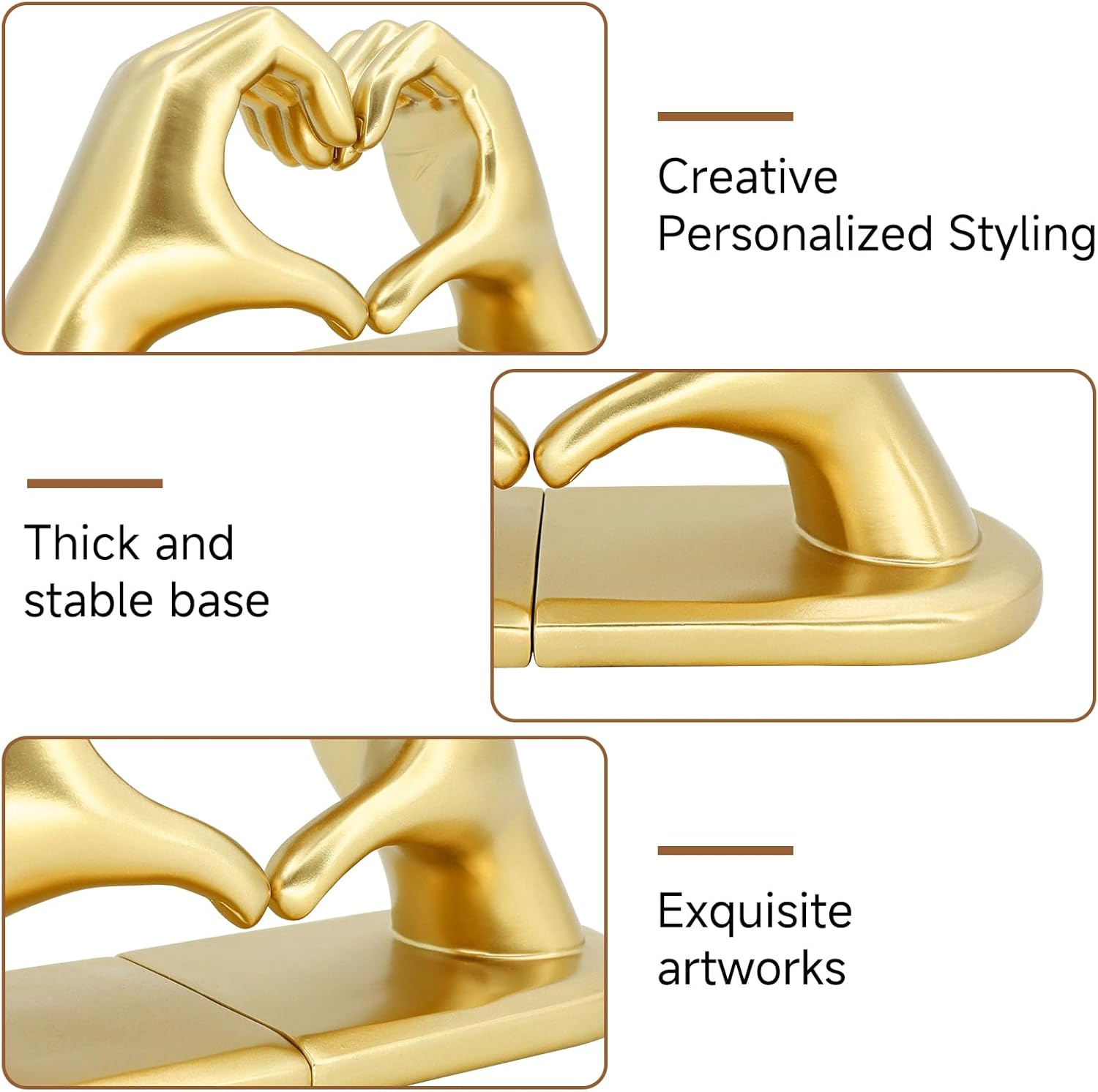 MOYI Decorative Book Ends,Heart Hands Decor Bookends, Unique Office Desk Indoor Home Decor Book Holder Ornaments for Living Room,Bedroom,Office Room-Gold