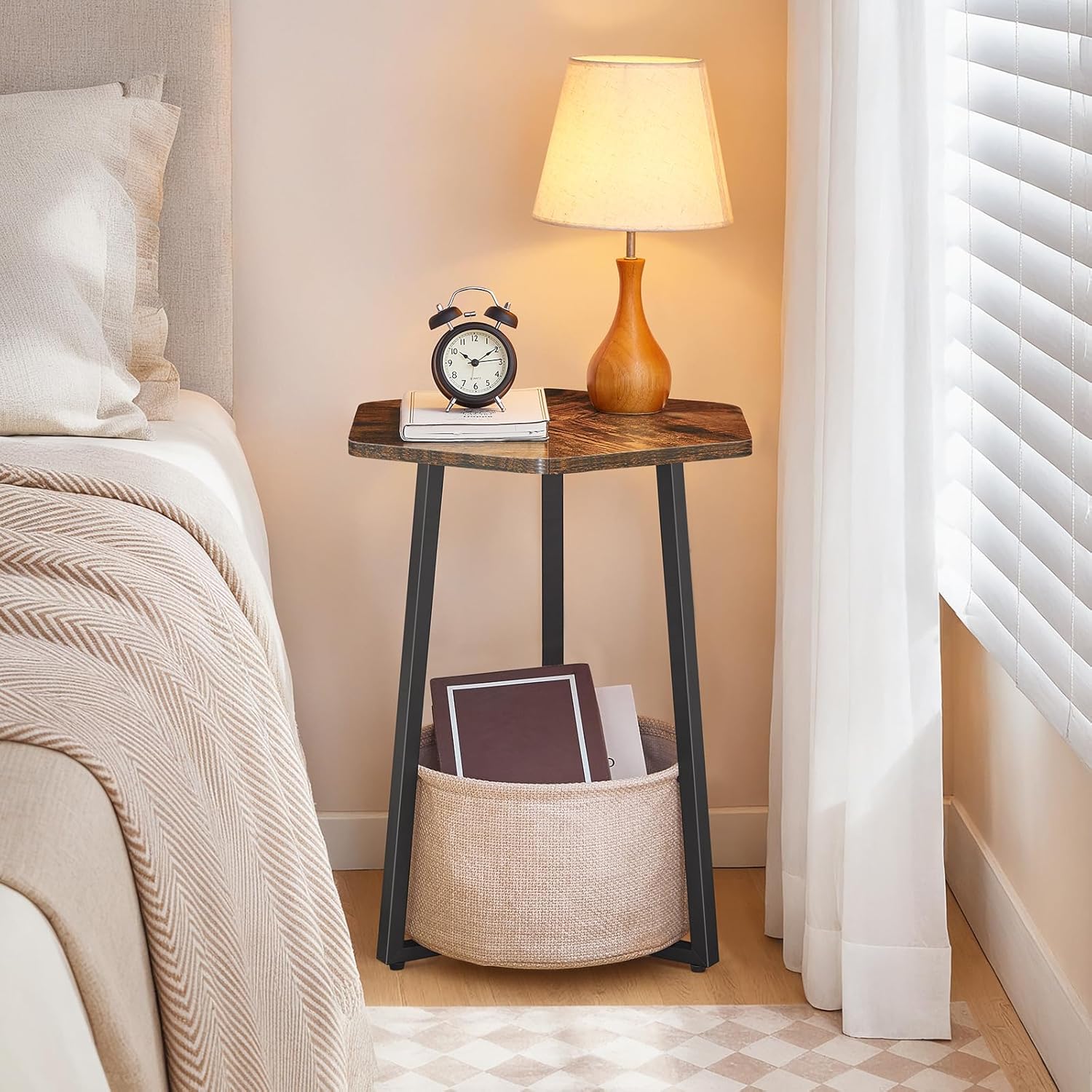 Fit Small Spaces: Measuring 18.1″L x 15.7″W x 21.9″H, this small side table with basket fits well in small spaces. Whether used as a end table in the living room or a bedside table in the bedroom, it provides ample room