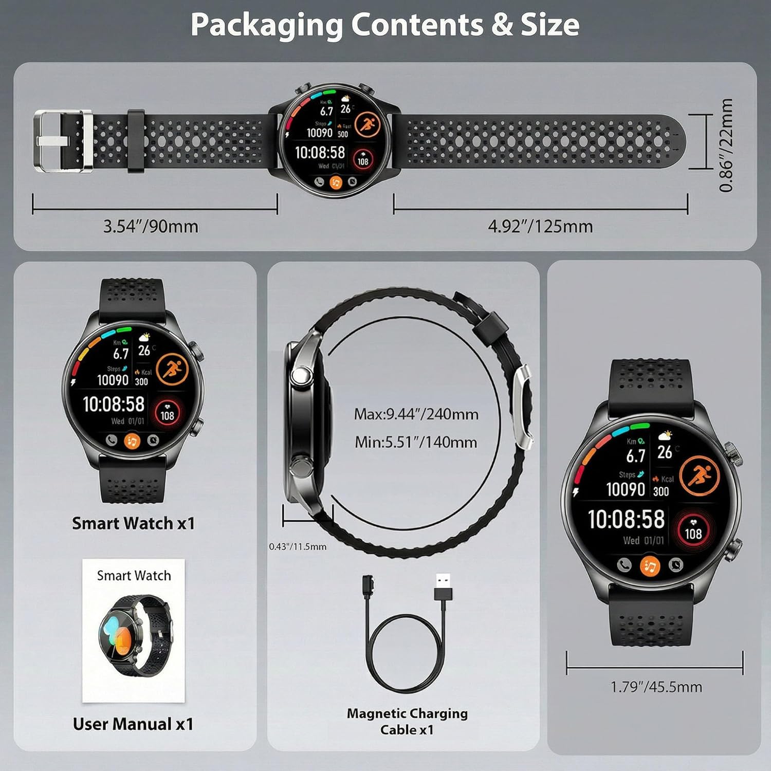 [1ATM Waterproof, Durable Build & All-Day Comfort] Built to handle your day, this waterproof smartwatch resists rain, sweat, and splashes with a 1ATM rating. (Not suitable for swimming or showering.) The lightweight case and breathable silicone strap ensure comfort for long hours of wear. Durable and stylish, it’s the perfect smartwatch for both men and women who want performance, protection, and comfort in one sleek, reliable device.