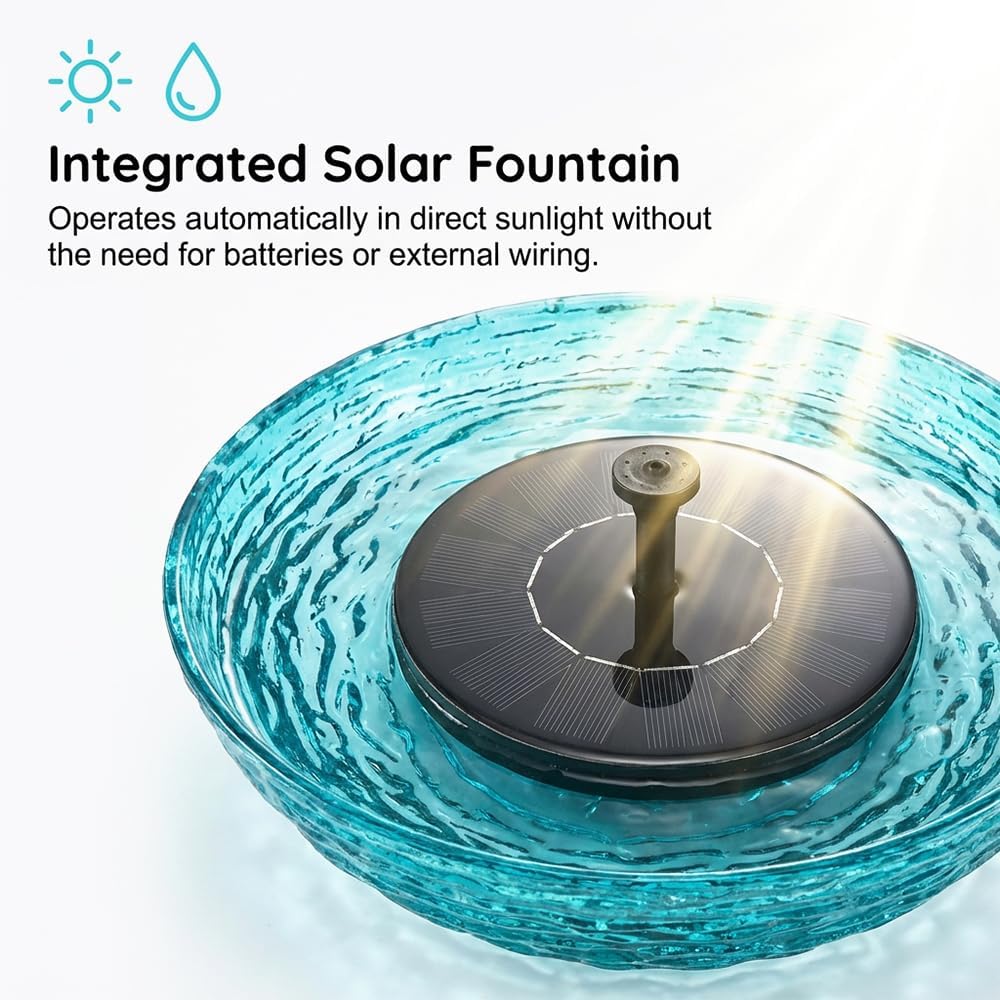 【Solar Powered Fountain】This hanging solar bird bath fountain runs on sunlight with no wiring or electricity required. The solar-powered cascading fountain automatically produces flowing water during the day, adding movement and a lively touch to your outdoor garden, backyard, or patio space.