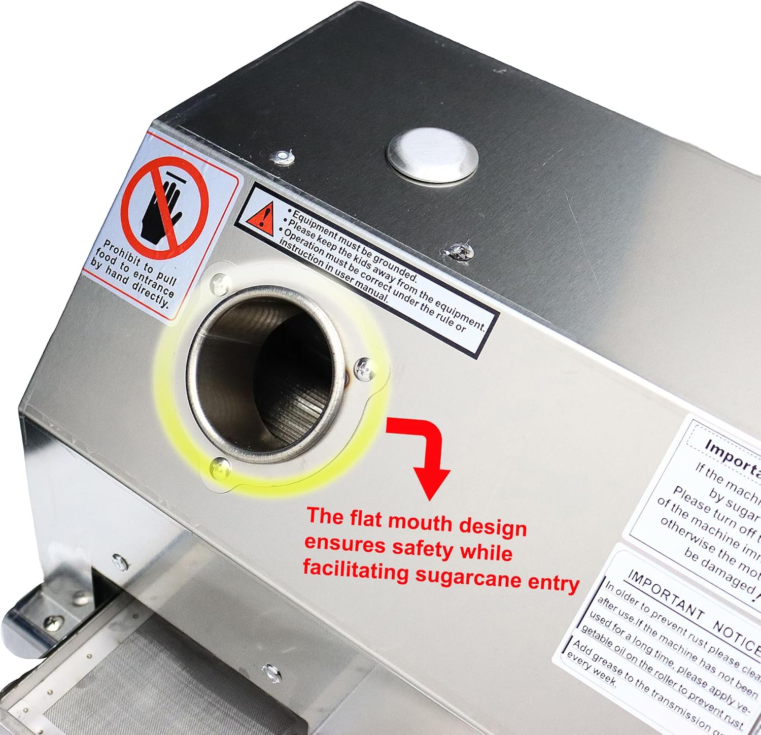 With three stainless steel rollers, the sugarcane can be pressed more thoroughly and increasing the output of sugar cane juice
