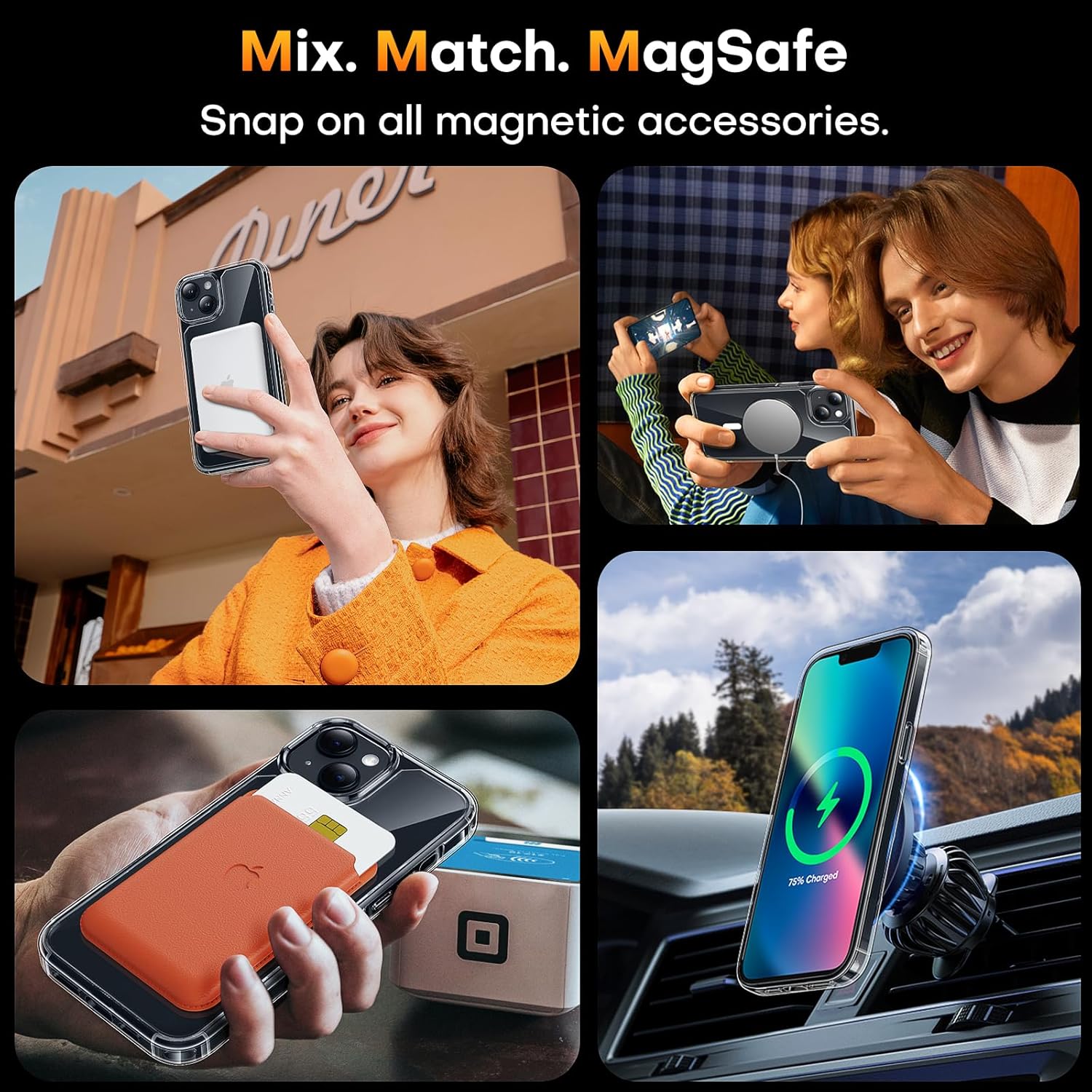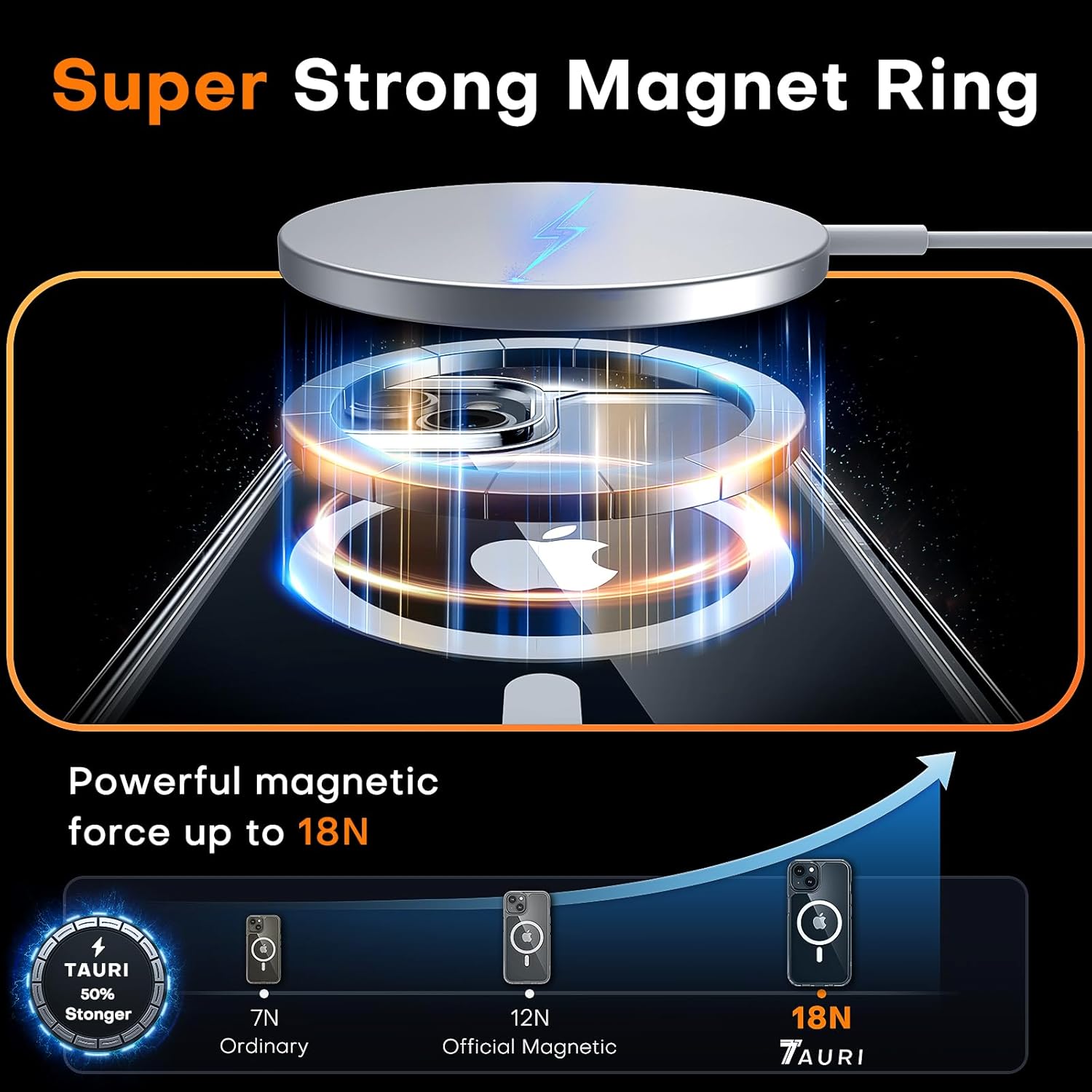 【Strong Magnetic Power】The built-in super N52 magnets in the TAURI for iPhone 13 case can deliver unmatched magnetic force. It outperforms bare devices and official protective cases with a 200% stronger adhesion, ensuring a lightning-fast and secure 15W charging speed. It’s fully compatible for all Mag-Safe accessories, including wireless chargers, leather wallets, battery packs, and car mounts
