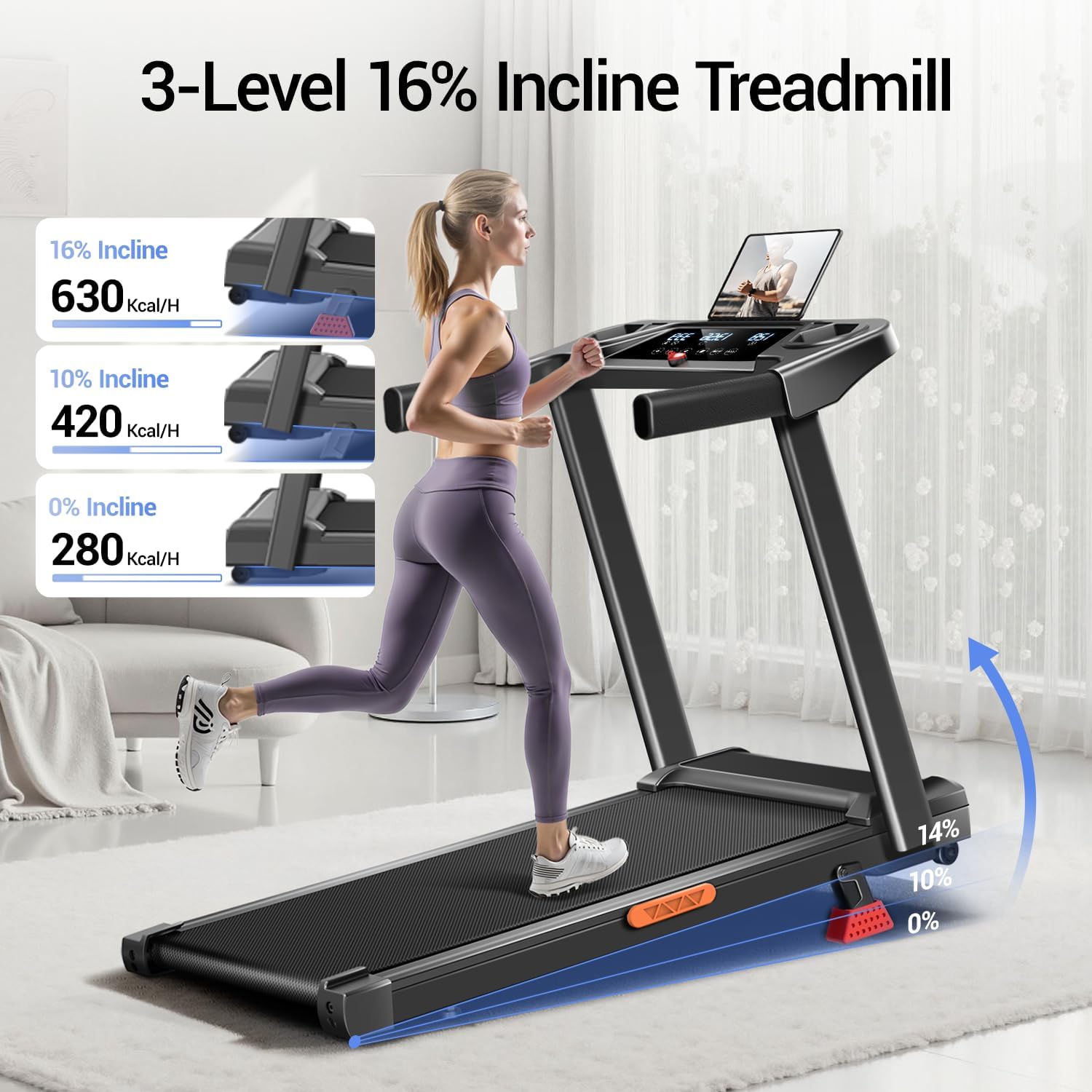 Accelerate Fat Loss with Triple‑Level Incline Training: Push your limits with three manual incline settings—2%, 16%, and 20%—designed to activate more muscles and elevate your heart rate quickly. Each level adds a powerful challenge that helps you burn calories faster and achieve visible results sooner.