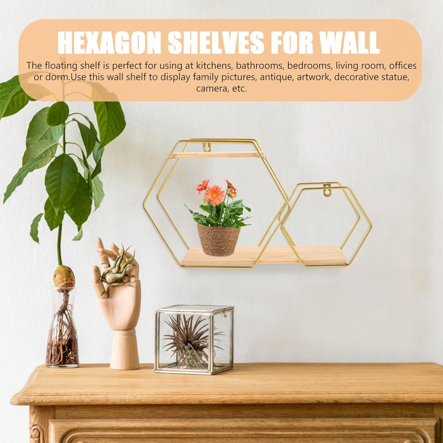– Use this wall shelf to display family pictures, antique, artwork, decorative statue, camera, etc display shelf.